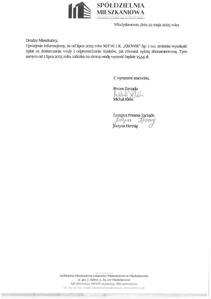 EKOWIK – zmiana stawki za wodę