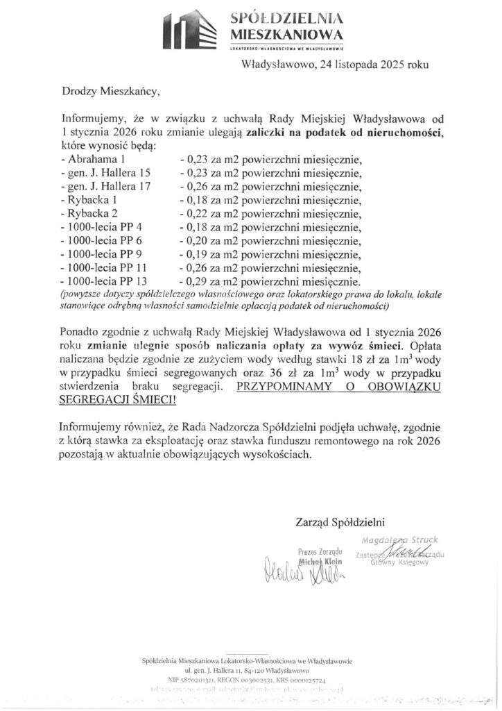 Informacja o zmianie sposobu naliczania opłat – 01.2026